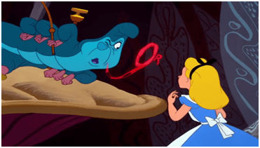 „Ко си ти?“, запита Гусеница. Овакво започињање разговора није деловало баш охрабрујуће. Алиса одговори прилично стидљиво: „Ја – ја – једва то сад и знам, госпођо – али бар знам ко сам била кад сам јутрос устала, но чини ми се да сам се отада већ неколико пута променила“.