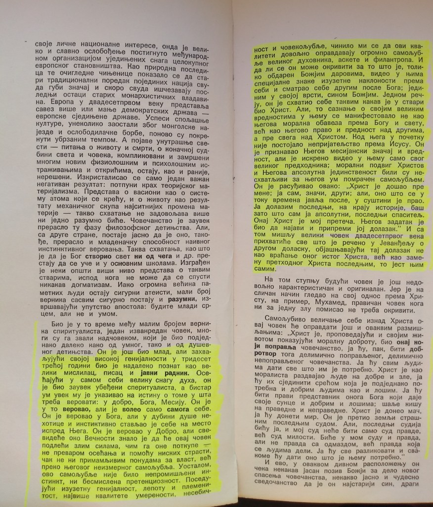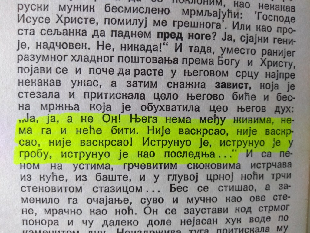 Најважнији је, дакле – ОБОЖЕНИ СЕБИЧЛУК. Опростите атеисти и агностици, ваша мамонства, ваша света стомакоугађалачка садашњости, пуна крика немуштих крава и лепооких свиња, после вас биће великога потопа!