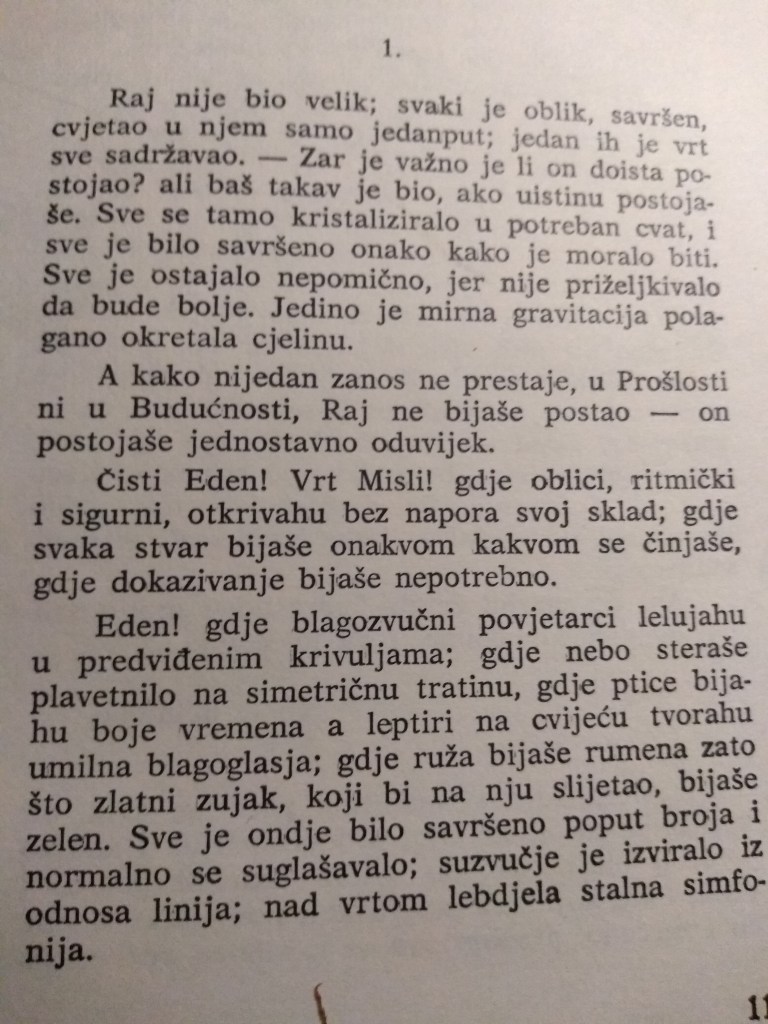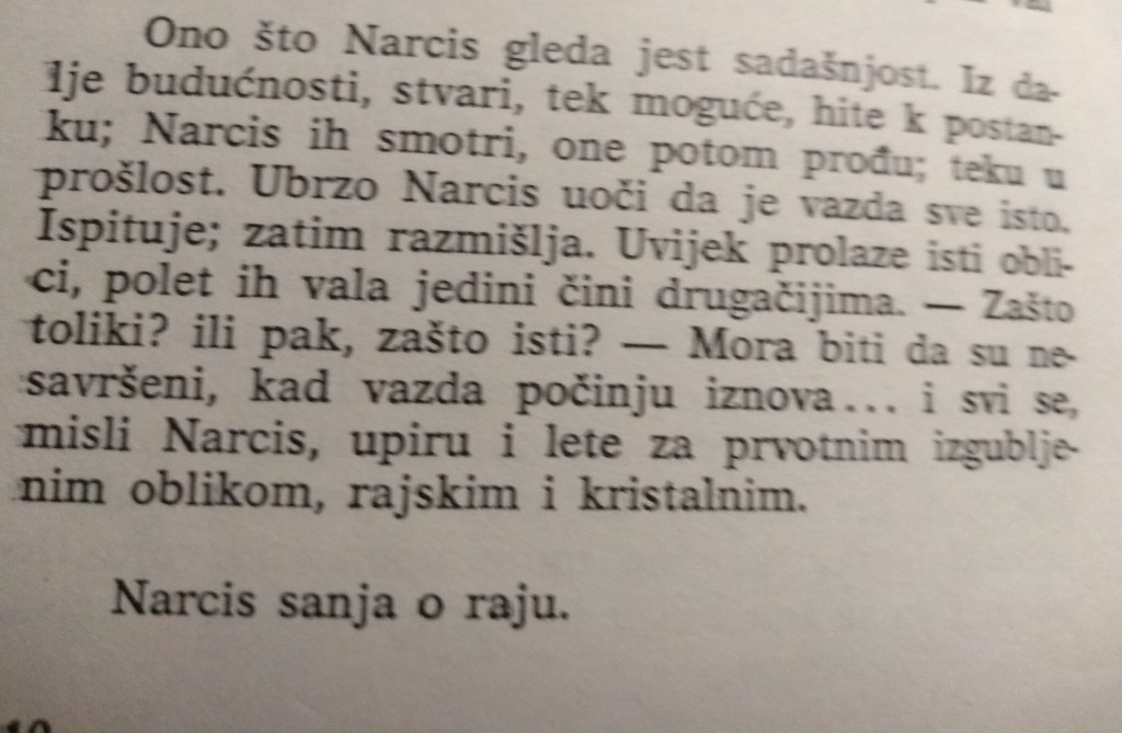 А, зашто је мени дата привилегија полу-божанства, ако не и самог божанства, то морате питати Љубоморног Демијурга. Али, он ионако не разговара са слабићима, само с нама изабранима. Слабићи не знају језик богова. Питајте Ничеа, лепо ће вам потврдити да сам у праву“.